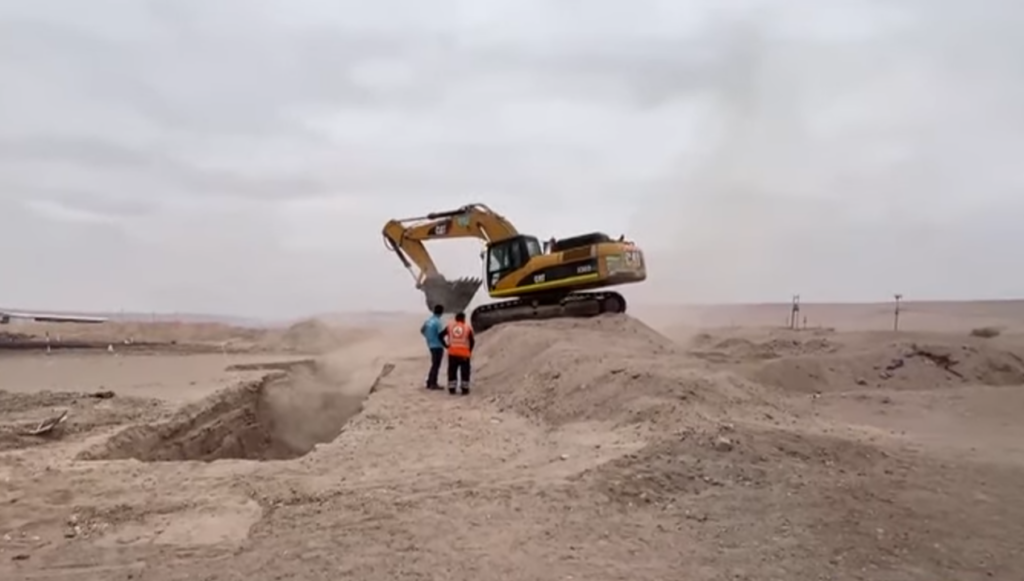 De acuerdo a lo que informó Infobae, los trabajos se desarrollan en las cercanías del complejo fronterizo de Santa Rosa, en la región de Tacna, a unos 60 metros de la línea de la Concordia. Según explicó el gerente de infraestructura del Gobierno Regional de Tacna, Eduardo Sánchez, la excavación forma parte de un proyecto de mantenimiento y ampliación de la plataforma destinada al control de camiones de carga pesada.