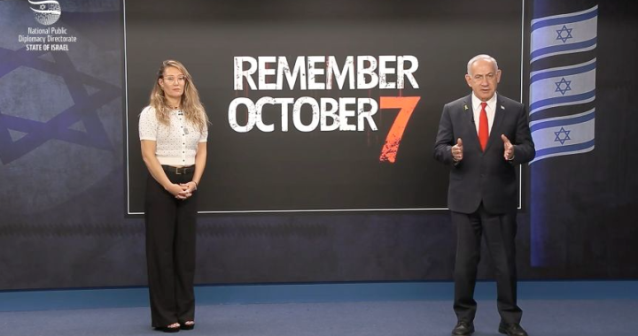 Acompañado por una familiar de víctimas de los ataques del 7 de octubre de 2023,