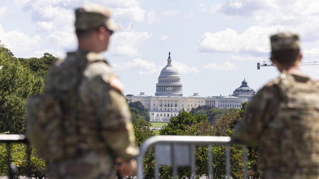 Miembros de la Guardia Nacional caminan dentro del Monumento a Lincoln en Washington, el 18 de agosto Ken Cedeño/Reuters